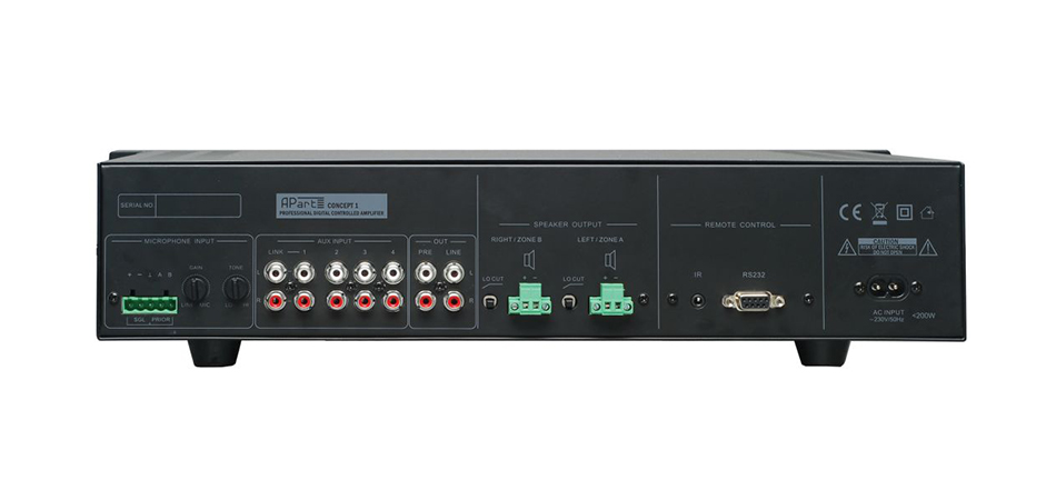 Concept 1 був розроблений для невеликих комерційних інсталяцій, де потрібно озвучити 1-2 зони, задіяти кілька джерел фонової музики і мікрофон для оповіщення. При цьому, простий бюджетний прилад повинен забезпечувати високу якість звуку і можливість роботи в режимі 24/7 (24 години, 7 днів на тиждень).