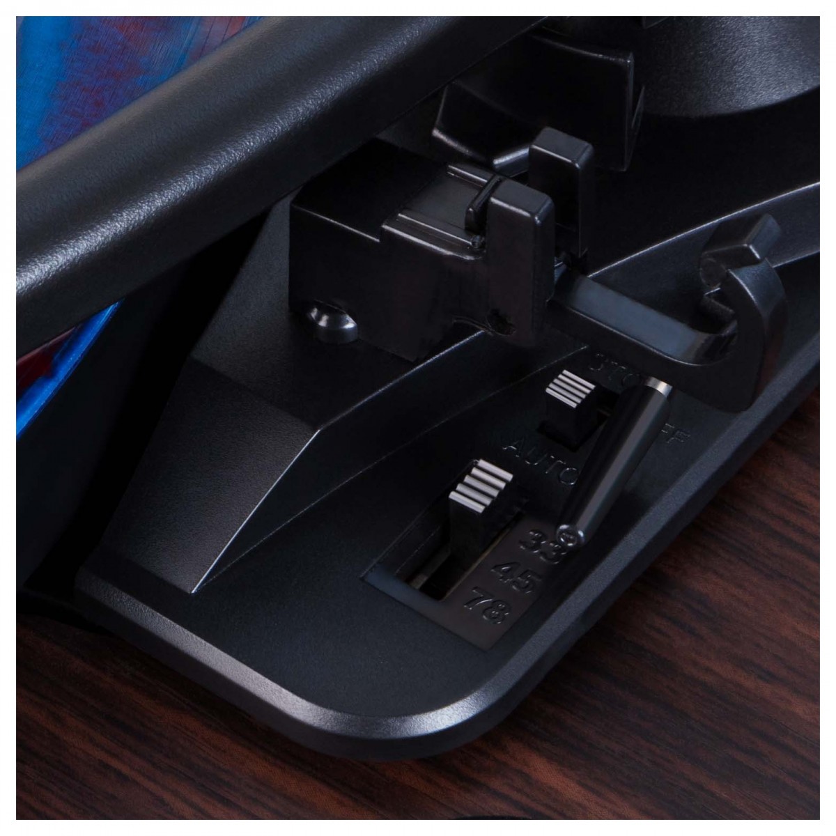 - 3-швидкісний (33 1/3, 45 та 78 об/хв) портативний програвач вінілових пластинок